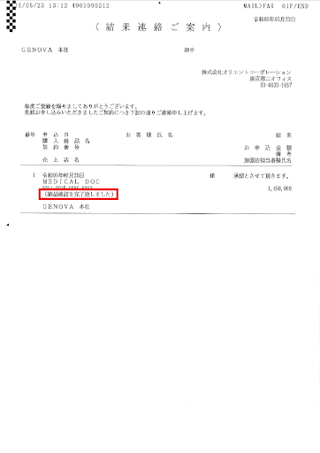 1.後確OKの結果はどの信販会社からもFAXで確認。